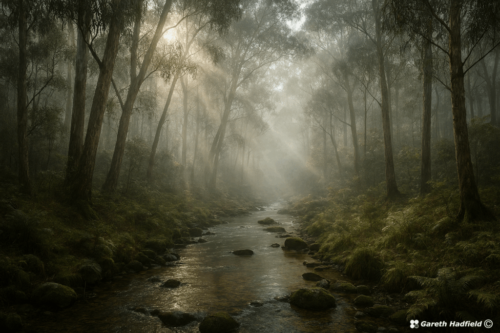 I did an experiment with AI. First, I created an image based on my text-only description of one of my favourite places on the Great North Walk (I used Microsoft Copilot). Let me know in the comments your guess where this is supposed to be: